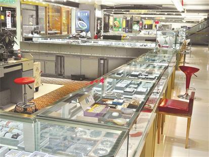 图为:余福泰珠宝广场,有的柜台空空荡荡